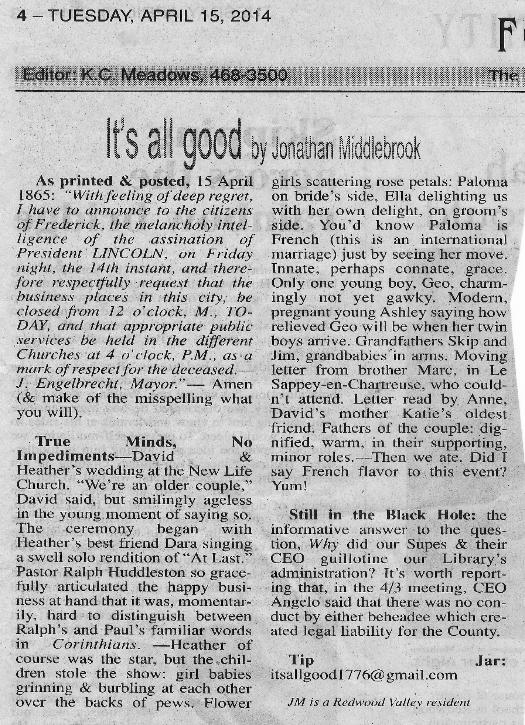 15, 2014 edition of the Ukiah Daily